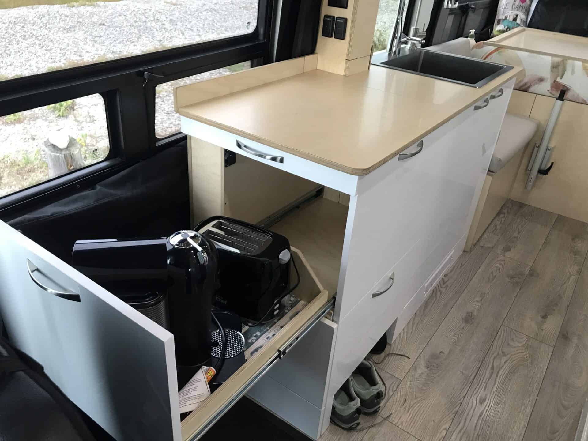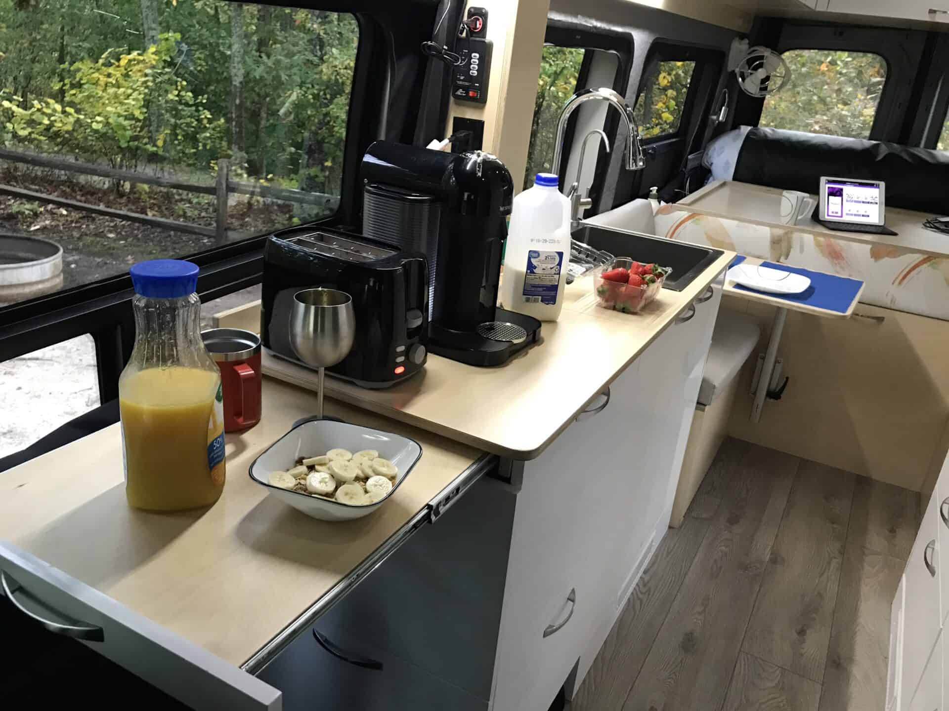 Nous nous doutions bien que la vanlife impliquait quelques défis et quelques adaptations. C’est pourquoi, avant de prendre notre décision finale, nous avons eu la bonne initiative de faire la location d’un Classe B : Sprinter Mercedes Benz, Pleasure-Way pour une semaine afin de faire l’essai de la vie dans un espace restreint ainsi que découvrir les avantages et les inconvénients de cette façon de voyager. L’expérience nous a vraiment confirmé que nous étions faits pour ce mode de vie et nous y avons trouvé que de beaux avantages.