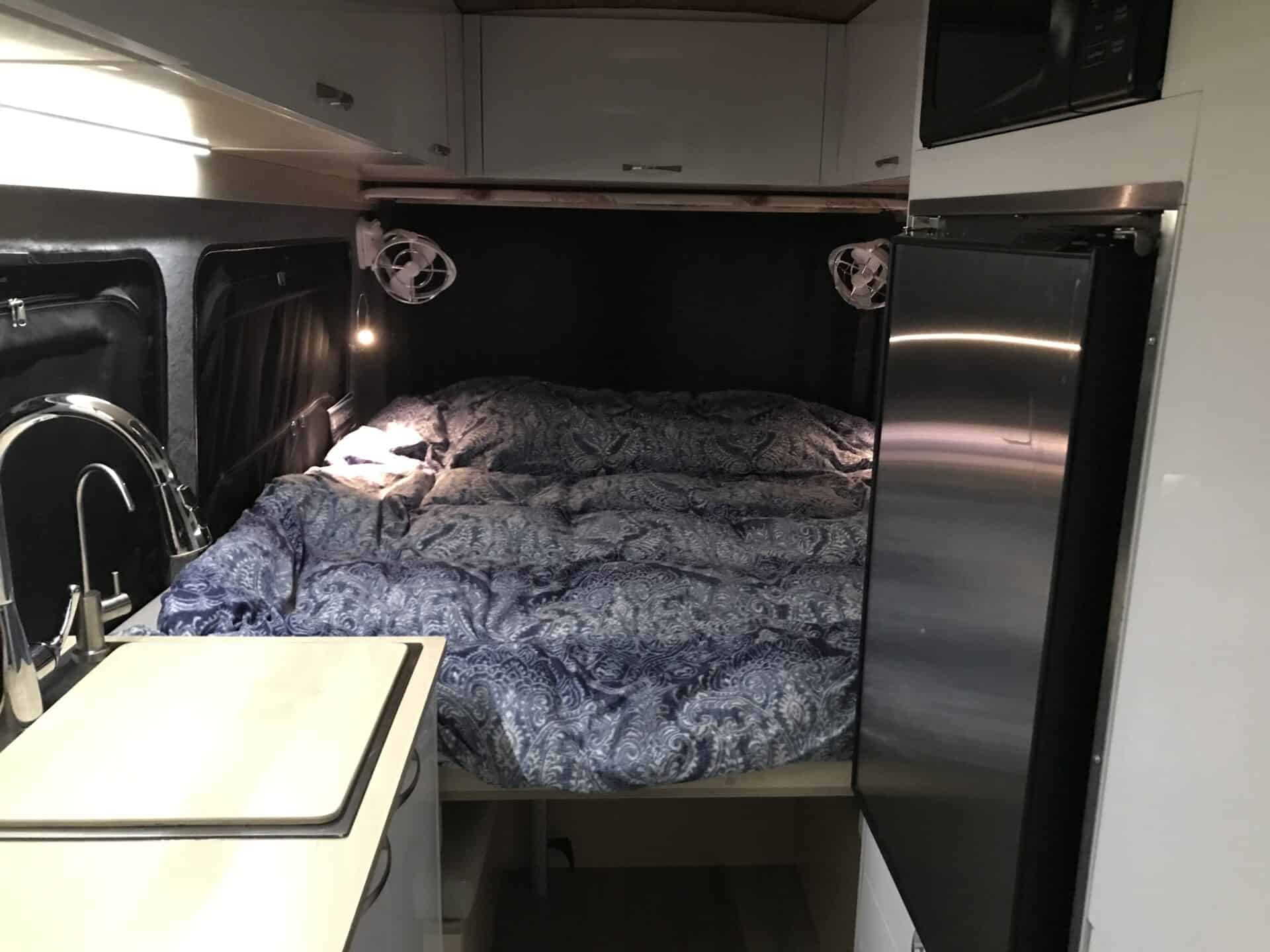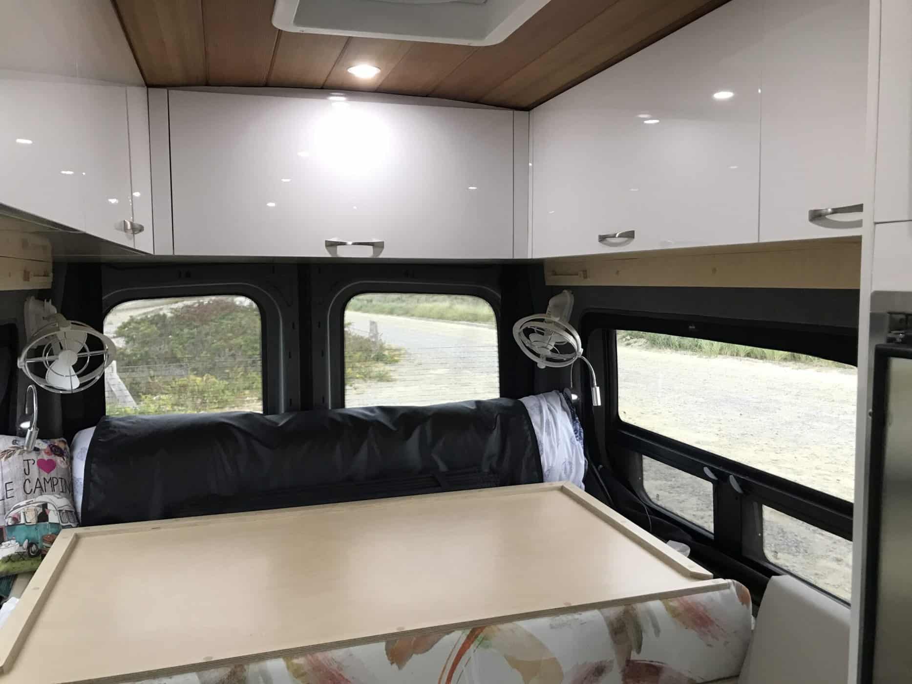 • Une chose devenait ABSOLUMENT certaine, il n’était aucunement question d’avoir une installation qui nous obligerait à faire et défaire notre lit soir et matin, à devoir placer des tablettes entre les sièges et nous retrouver à genou sur le matelas pour placer le drap contour.