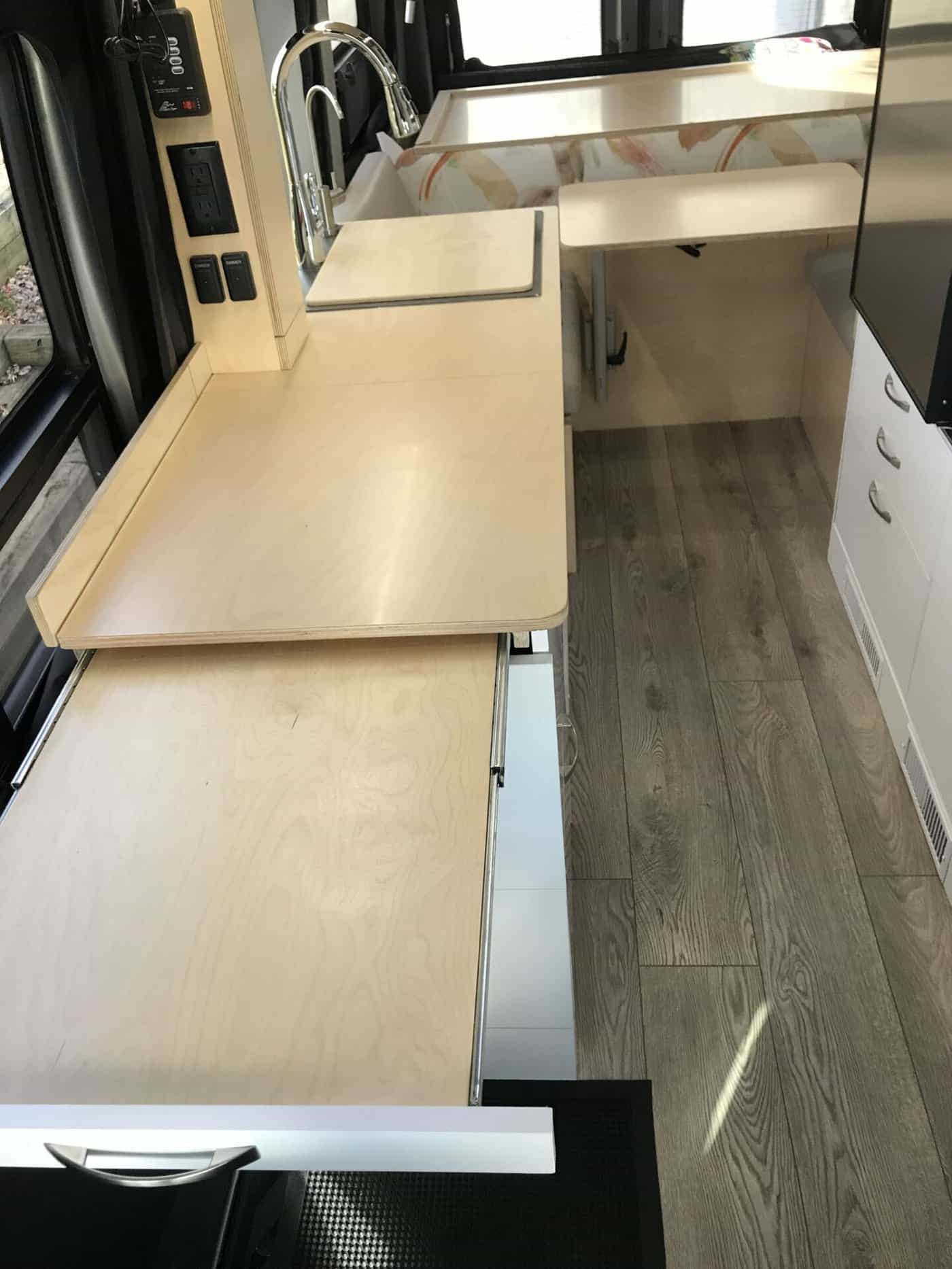 Je n’irai pas plus loin dans cette description de notre Vanouk puisque j’ai l’intention de documenter chacun des choix qui ont été faits ainsi que fournir peu à peu les détails de notre conversion, mais d’ici là, voici quelques photos du résultat obtenu!