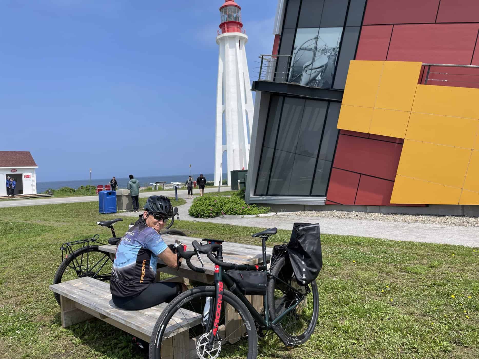 Nous nous y sommes donc arrêtés le temps de faire un peu de tourisme et un peu d’exercices. Nous sommes allés faire une randonnée sur le Pic Champlain au Parc du Bic qui n’est pas très loin puis, le lendemain, nous avons enfourché nos tout nouveaux vélos ‘Gravel bike’ pour rouler sur la piste cyclable qui traverse la ville pour ensuite longer le fleuve en direction est. Nous adorons rouler tout en regardant de beaux paysages et les belles propriétés. Rimouski est une magnifique ville sur la rive sud du fleuve qui vaut certainement qu’on s’y arrête.