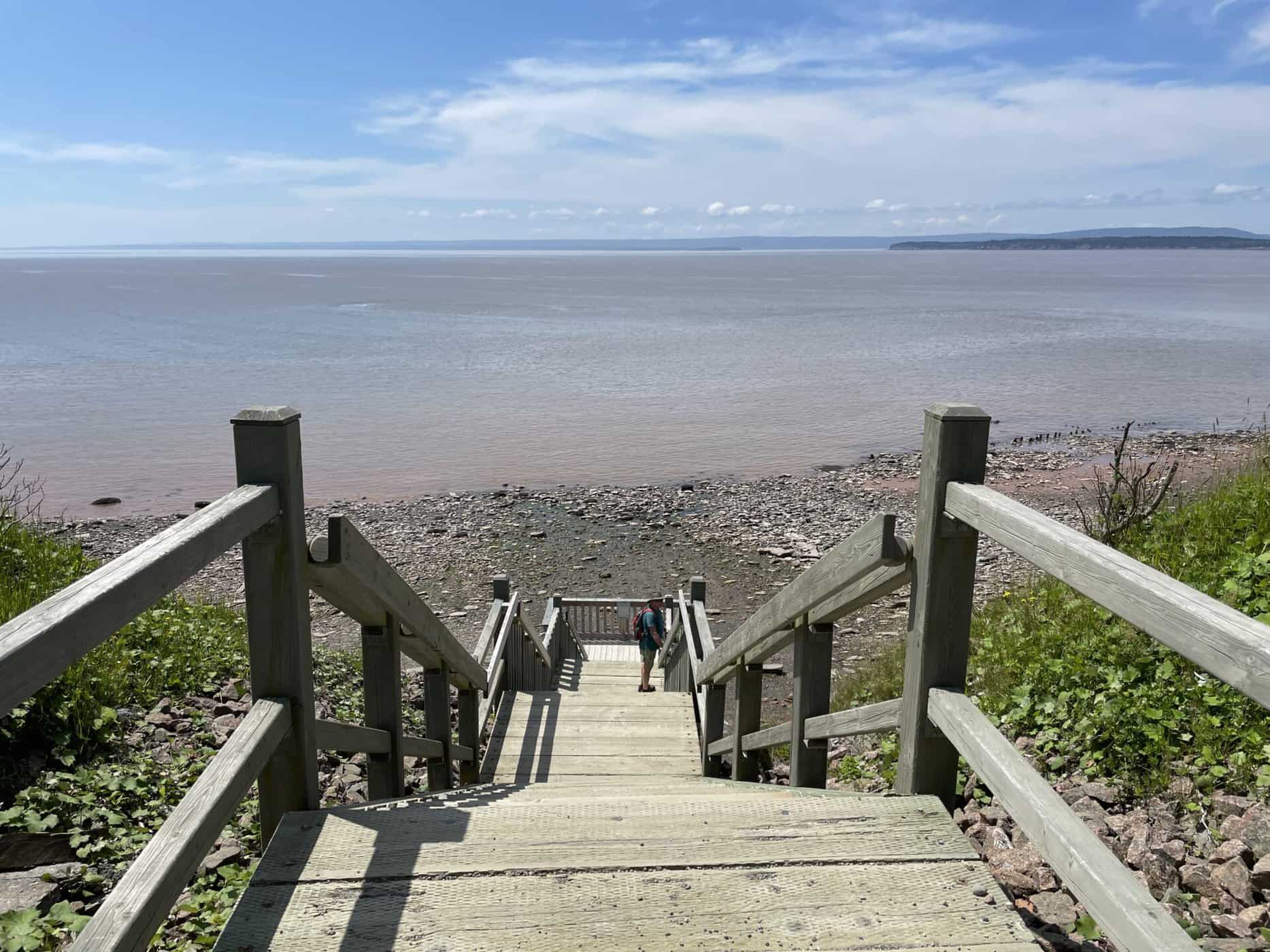 Nous cherchons par la suite notre tout premier boondocking. Nous serons seuls sur les bords d’une belle grande plage rocailleuse (iOverLander) tout au bout d’un chemin qui menait à un ancien quai près de Apple River dans la Baie de Chignecto.