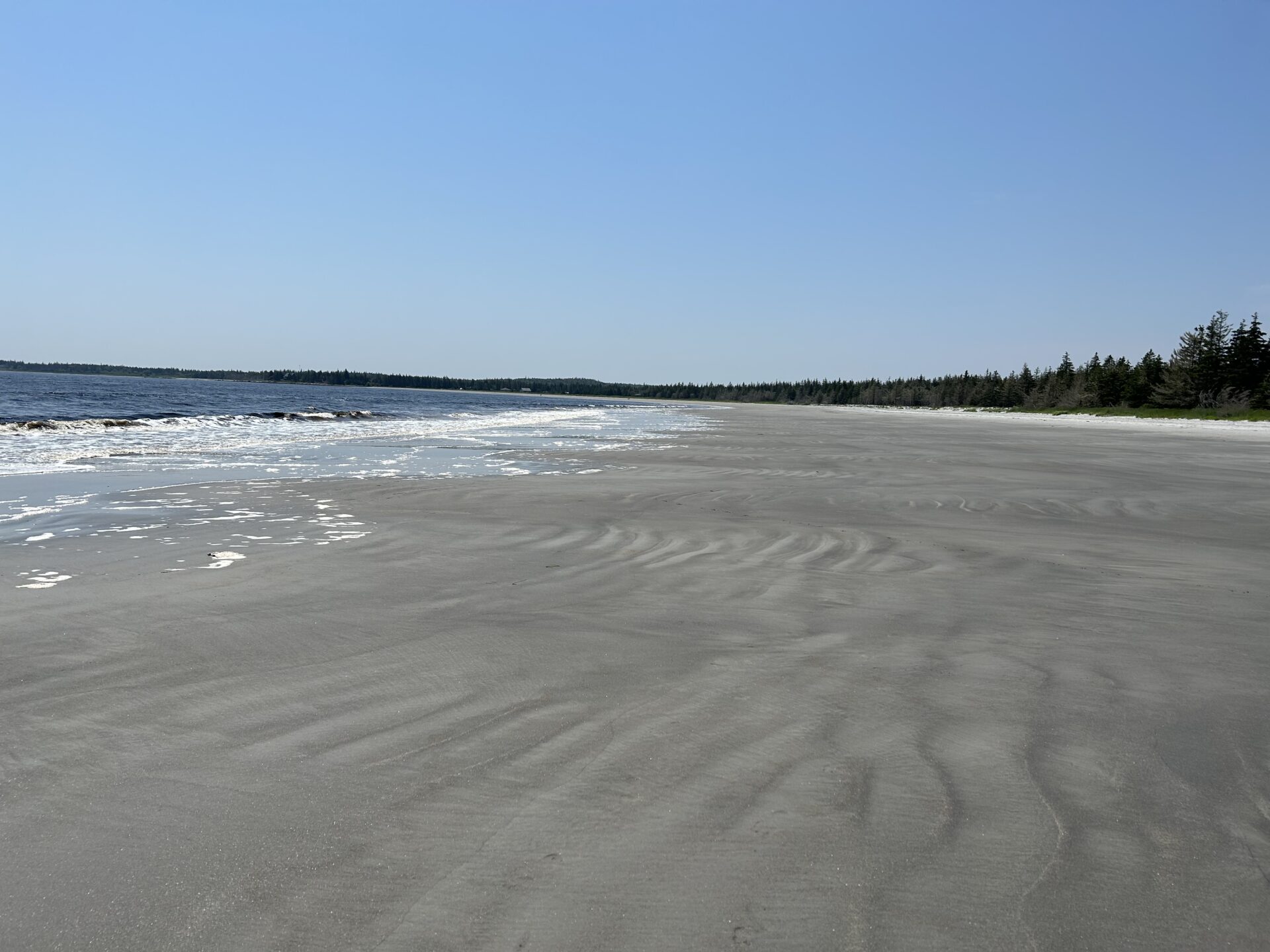 Puis la route nous amène à Roseway Beach où nous avons malheureusement pu constater à quel point les feux de mai-juin 2023 dans cette région de Shelburne y avaient laissé leurs marques. Nous étions franchement boulversés par le paysage désolant que nous avons dû traverser pour nous rendre à cette plage.