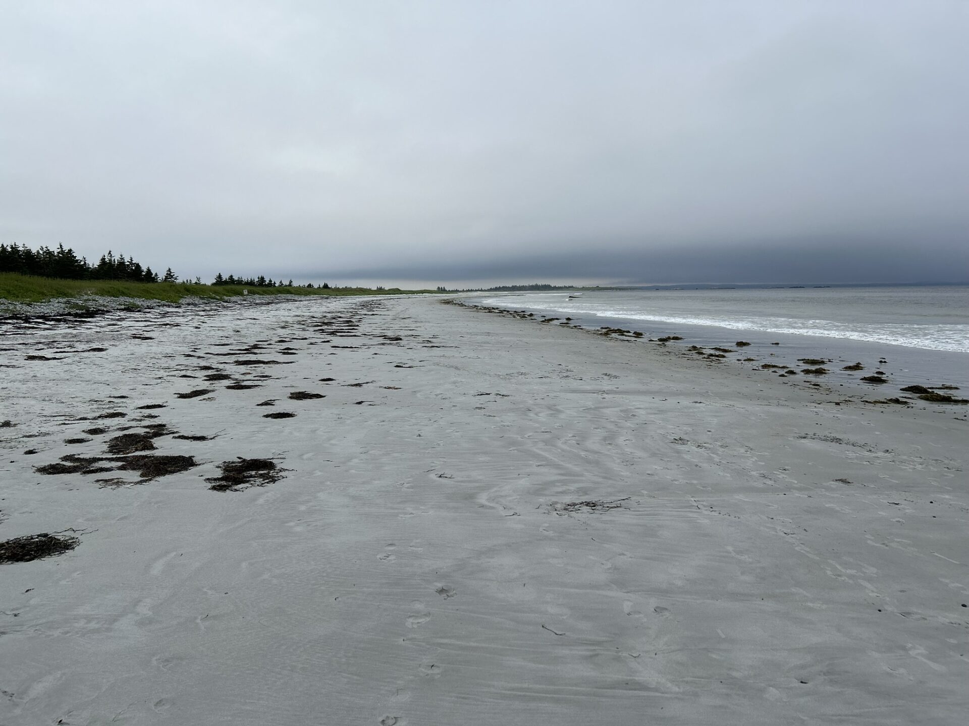 La deuxième plage de la journée fut Crescent Beach Lockeport. Il y avait de plus grosses vagues qui amenaient sur la rive algues et méduses. Nous lui avons donné un 6/10.