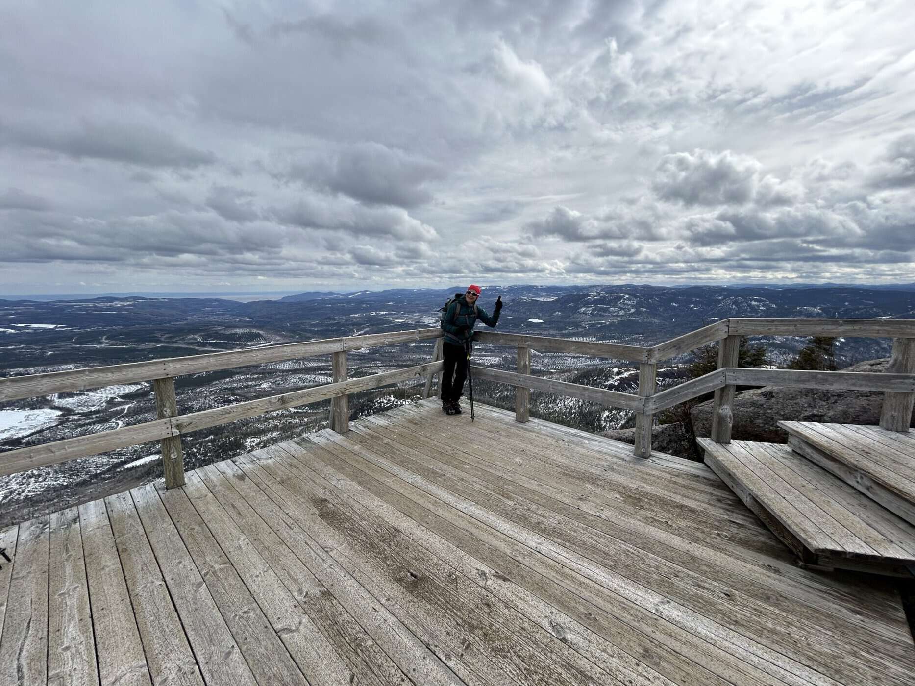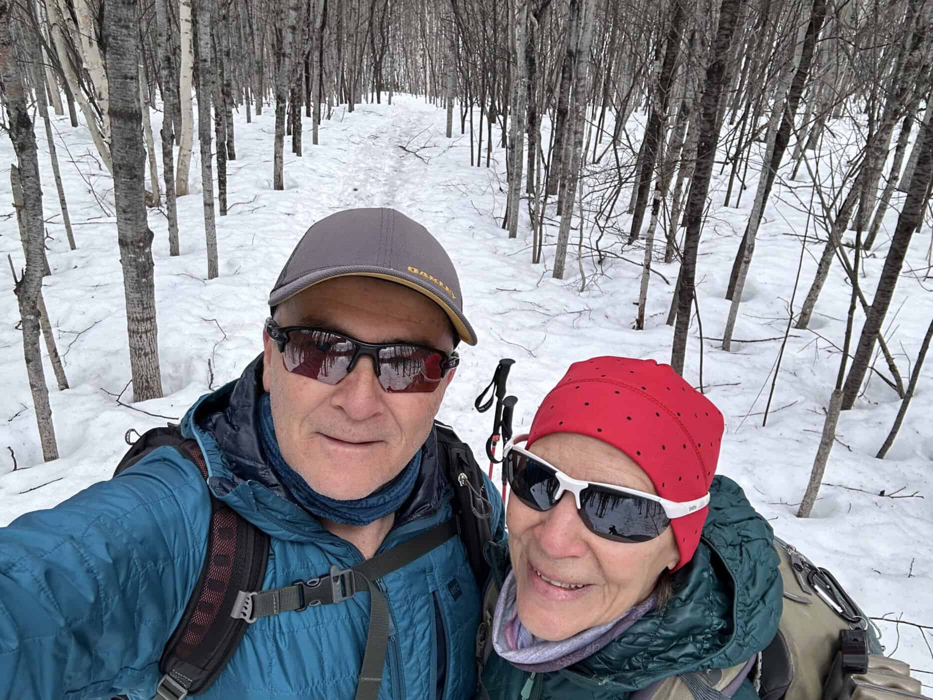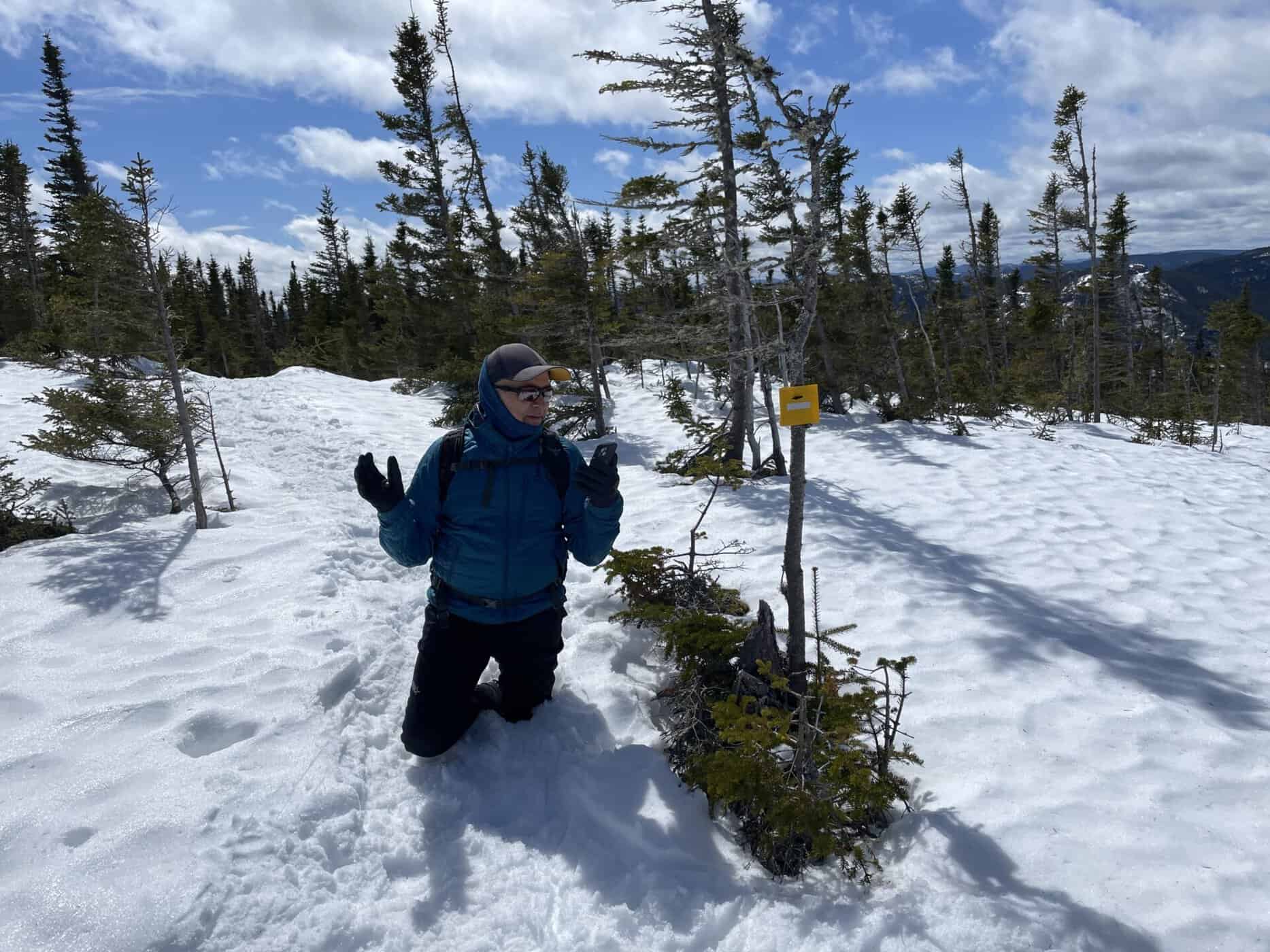 Une boucle de 12.6 km qui cette fois-ci nous a donné du fil à retordre. Les sentiers de raquettes que nous empruntons habituellement en crampons sont normalement assez tapés pour ne pas que l’on ne s’enfonce dans la neige. Ce qui n’était pas du tout le cas en ce 14 avril où la neige était vraiment molle et mouillée. Nous devions faire très attention à chaque pas tout au long de la montée et jusqu’au Mont du Lac des Cygnes qui se situe au km 9 sur un total de 12.6 km. Cela nous aura pris un peu plus de 6 heures pour faire le trajet que nous parcourons habituellement en moins de 4 heures.