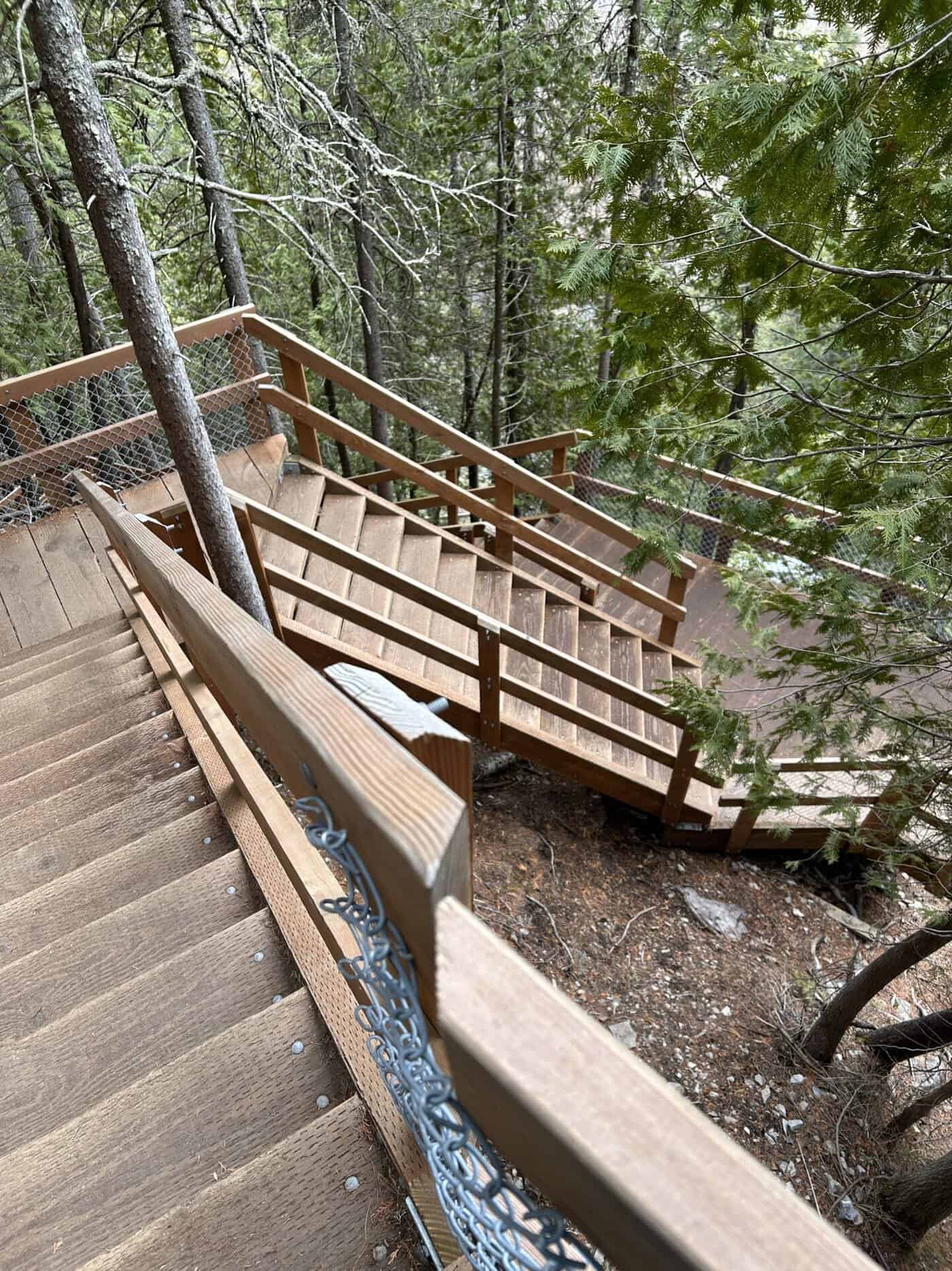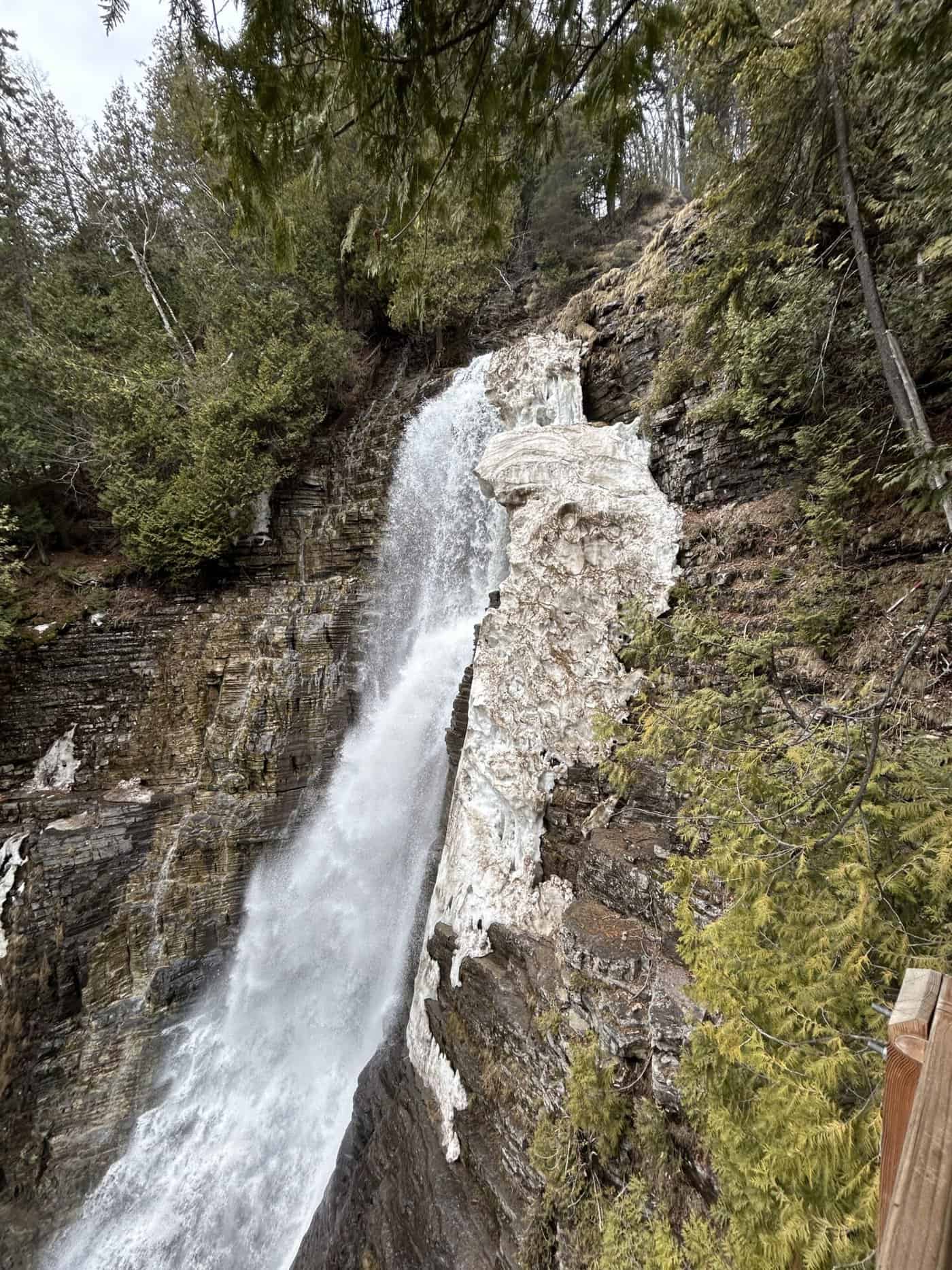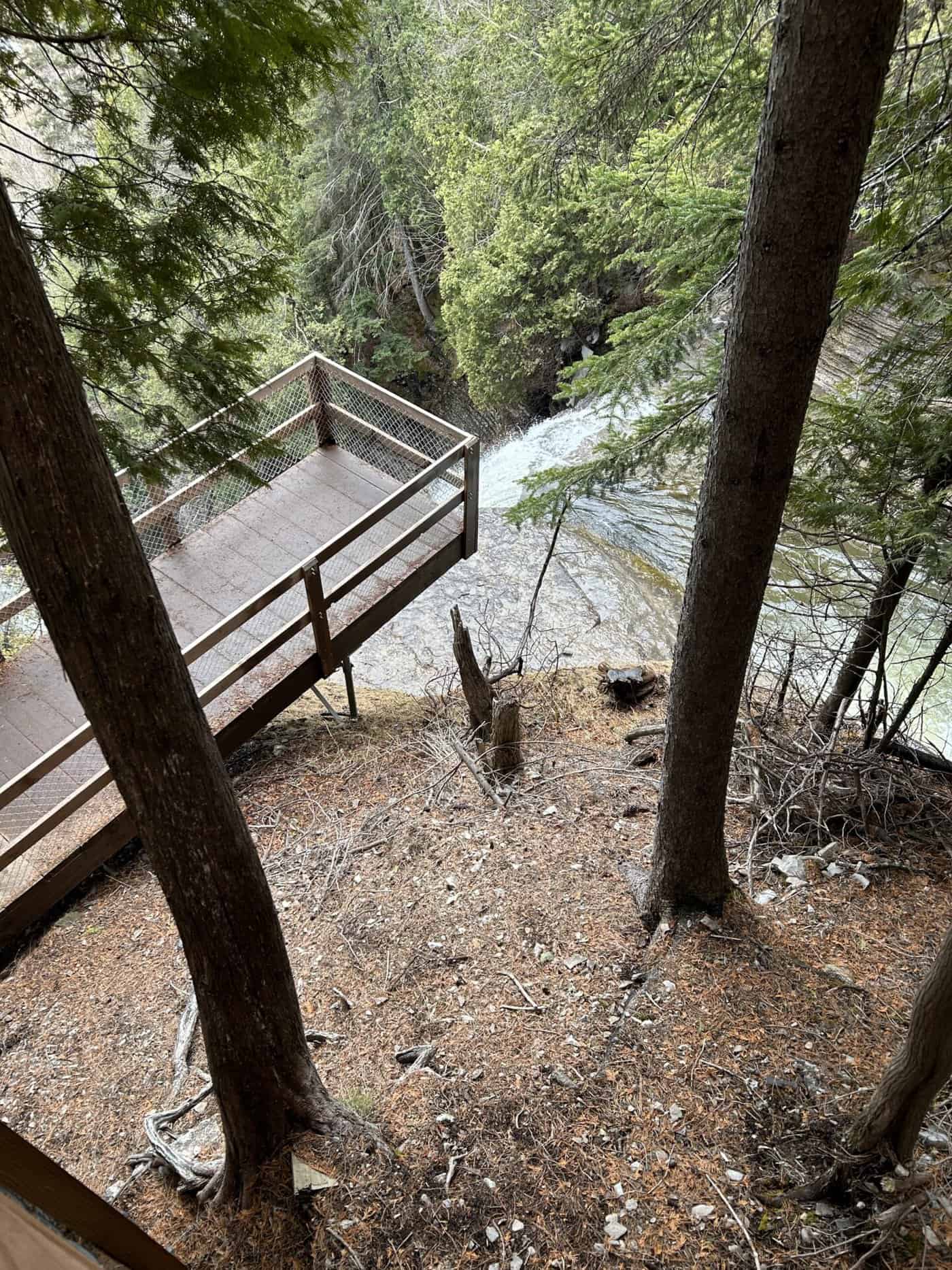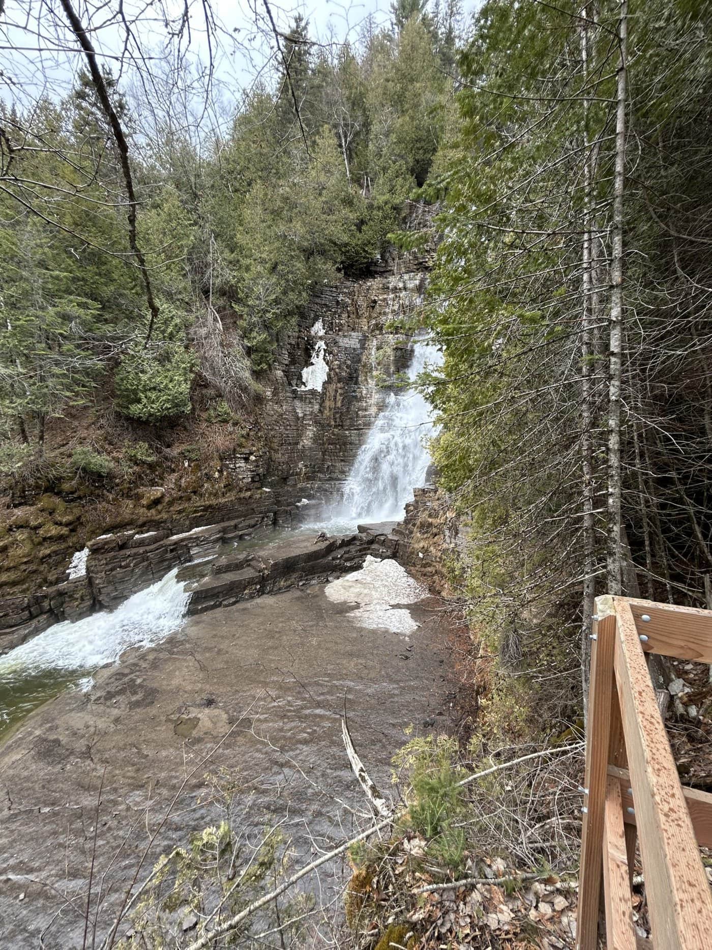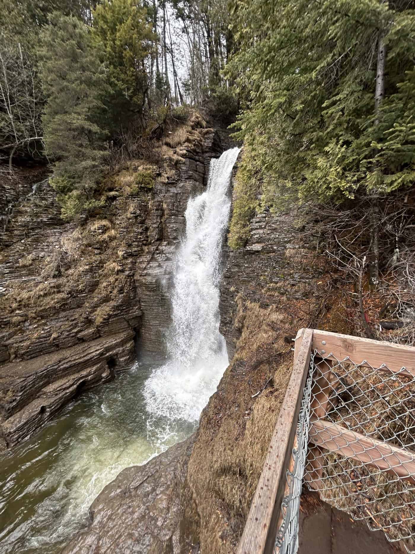 Trois magnifiques cascades que l’on peut suivre par un parcours d’escaliers jusqu’au bas de la chute et ensuite, soit vous revenez sur vos pas, mais cela implique de remonter les escaliers qui comportent plusieurs marches ou bien vous continuer la boucle pour une belle randonnée totale de 4,8km.