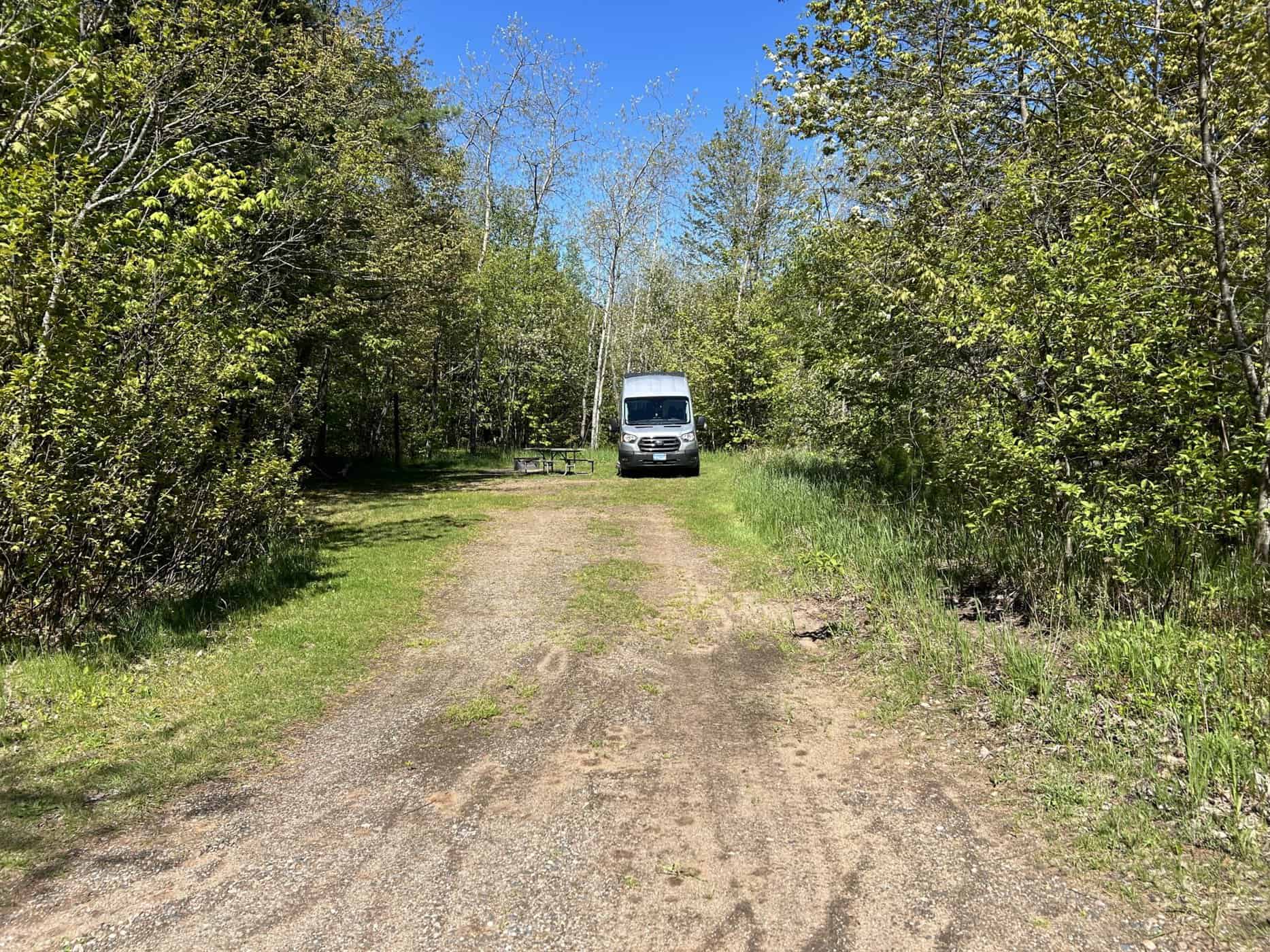 Un petit camping tout modeste, mais avec de très beaux et grands terrains avec beaucoup d’intimité. Quelques-uns sont directement sur le bord du lac Supérieur. Il n’y a pas de service de douche ni de services sur les terrains. Aucun branchement ni à l’eau ni à l’électricité.