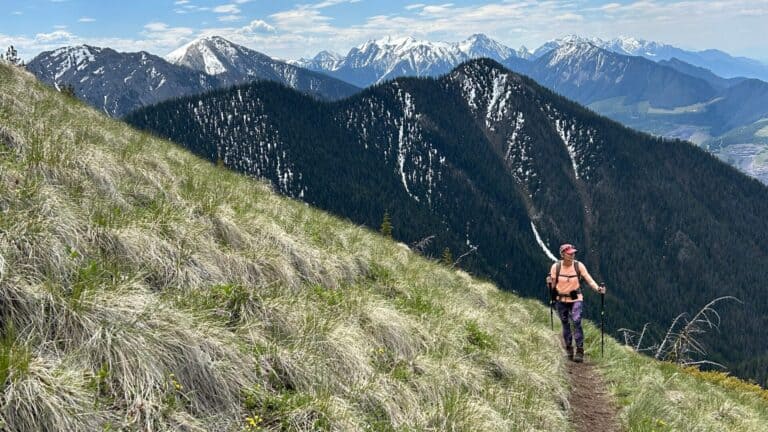 Une fois rendus au bout du chemin, nous partons gravir cette montagne dont on nous a vanté les beautés. Il faut être bien préparé et être munie de vaporisateur de poivre à ours, car ne l’oublions pas, nous sommes dans un territoire dominé par les grizzlis et les ours noirs. Le secret pour éviter de faire une rencontre avec un ours c’est de faire du bruit afin de ne pas le surprendre en train de se nourrir dans les buissons. Nous marchons en parlant fort et lançons régulièrement des OHEY! OHEY!