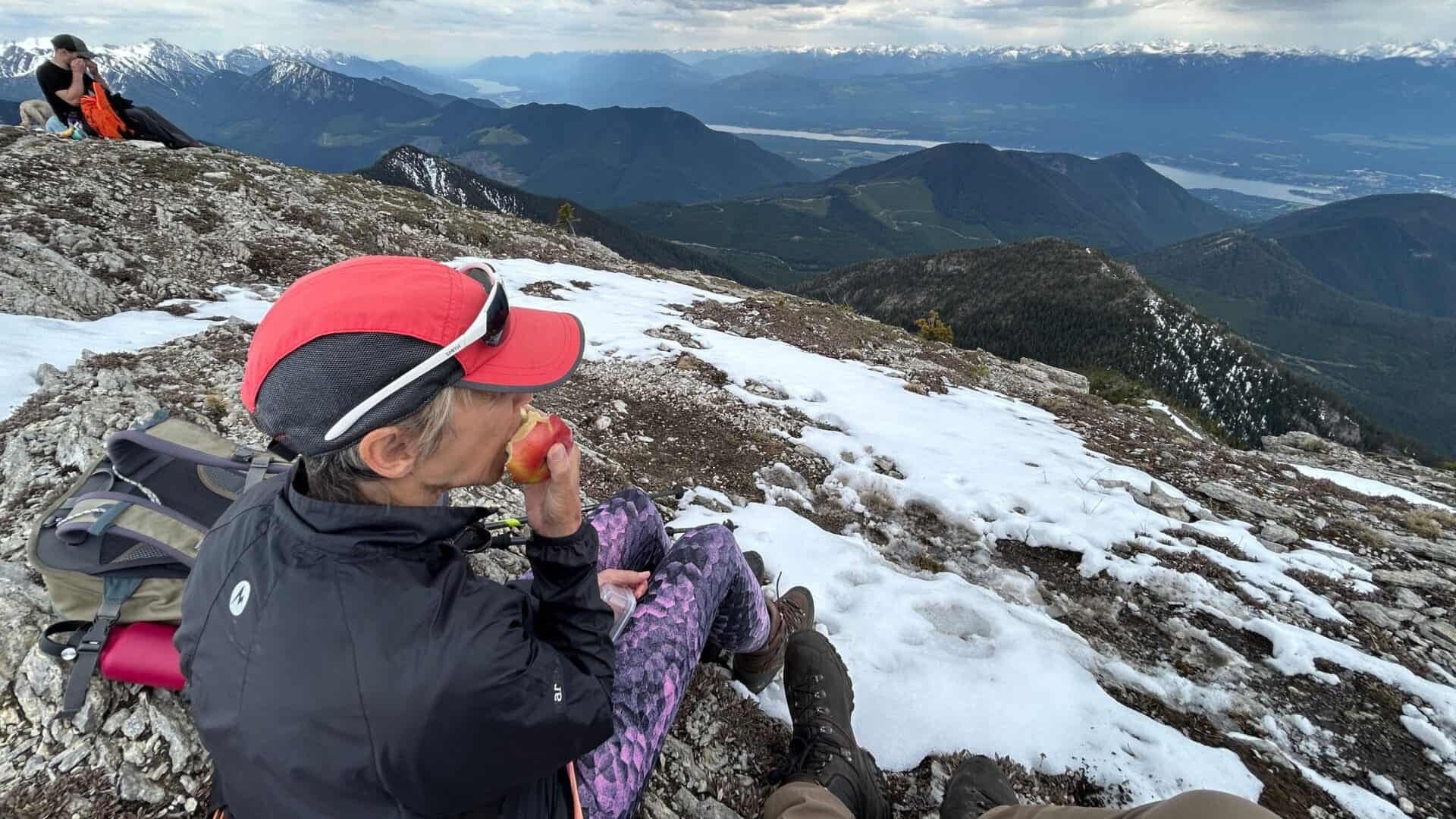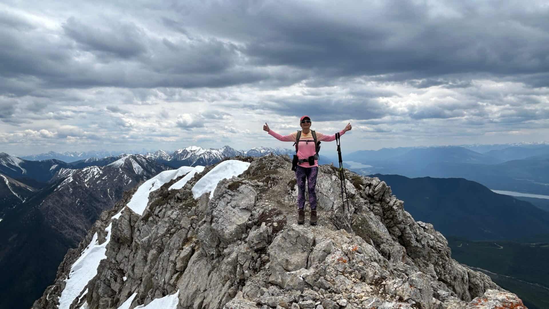 Une montée à pic et soutenue jusqu’au sommet nous attend. Alors, allons-y. Comme tout début de randonnée et tant que les jambes ne sont pas réveillées, nous débutons avec une certaine difficulté. C’est vraiment à pic, ouf ouf! Aucun répit, ce fut ainsi jusqu’au sommet! Le dernier kilomètre nous a heureusement fait oublier nos petites souffrances. Un sommet spectaculaire avec des vues à couper le souffle. Soudainement, nous nous sentions remplis d’endorphines, de sérotonine et de bonheur. Nous ressentions une telle fierté d’avoir atteint ce sommet. Nous l’avons dégusté jusqu’à la dernière goutte et jusqu’à reprendre le sentier pour la descente. Une descente qui fut toute aussi difficile pour nos jambes déjà fatiguées.