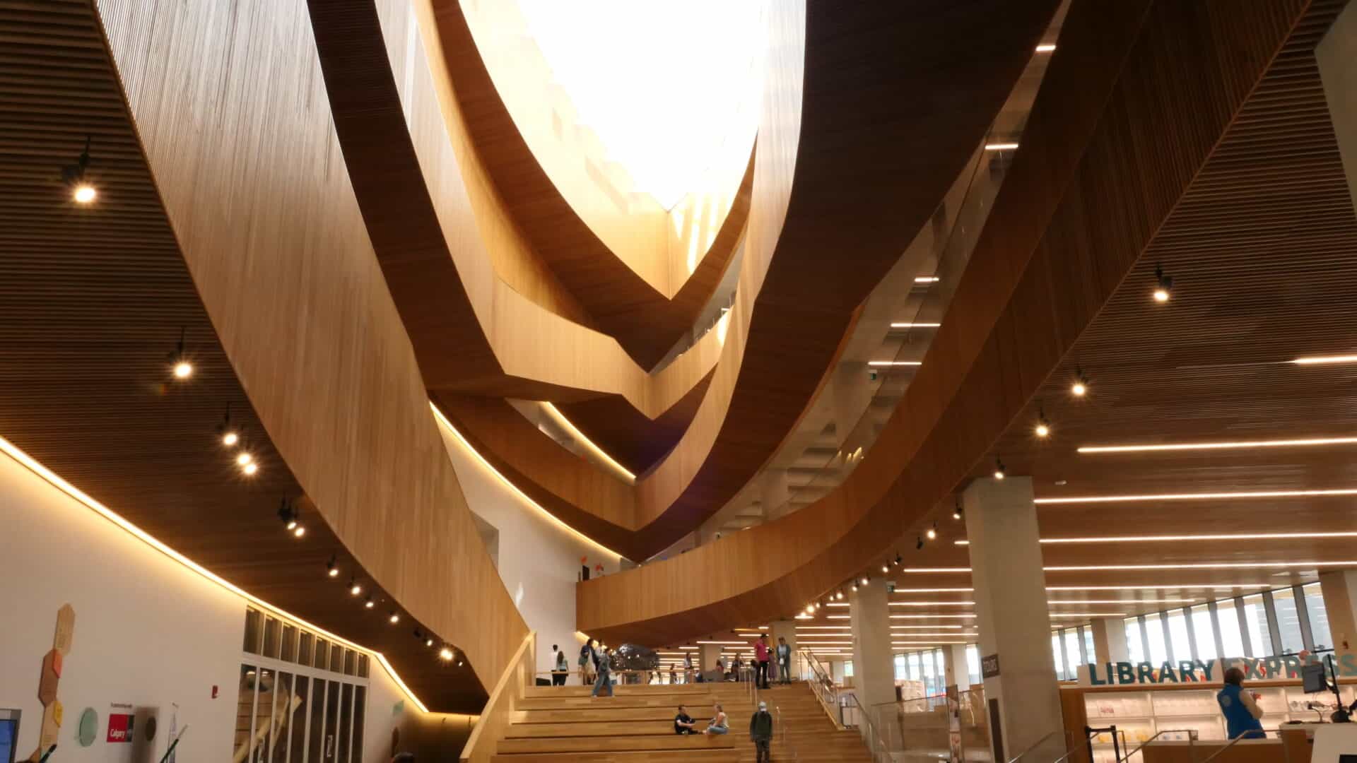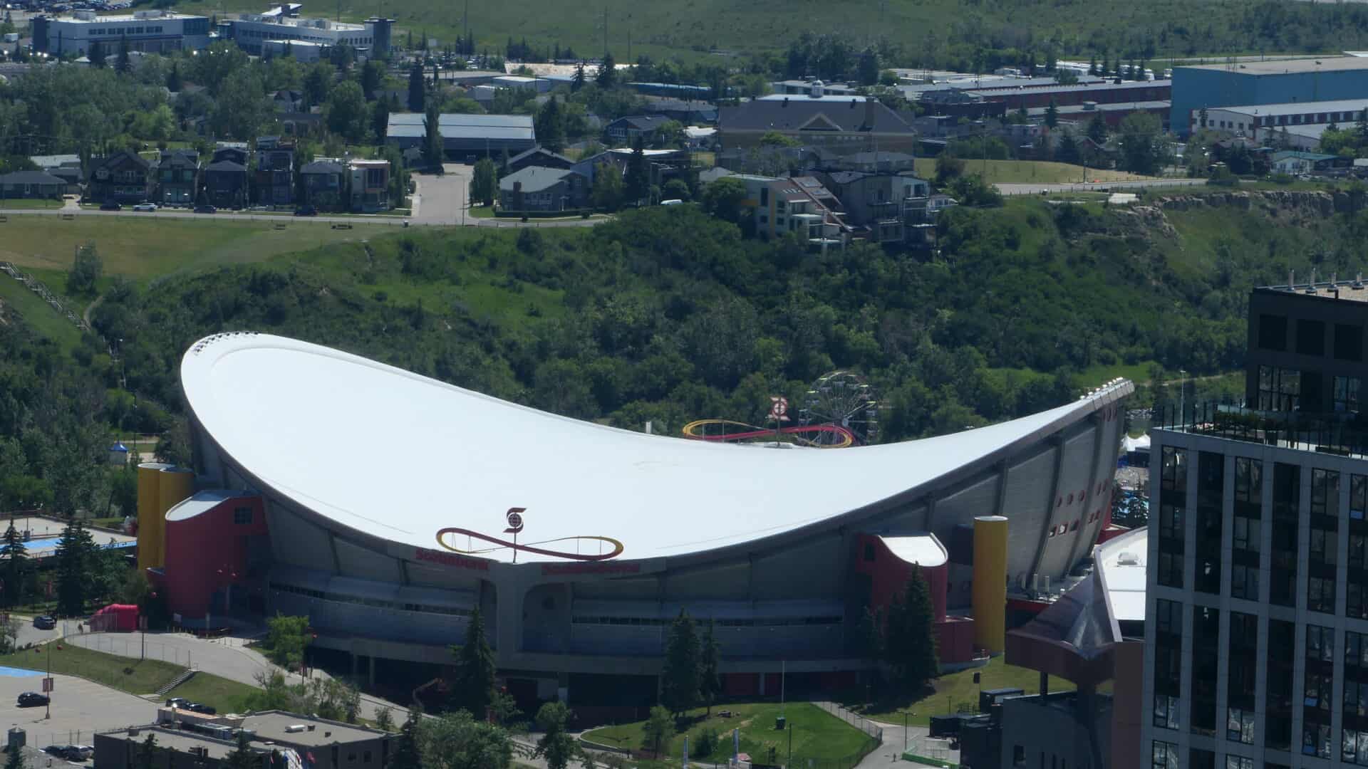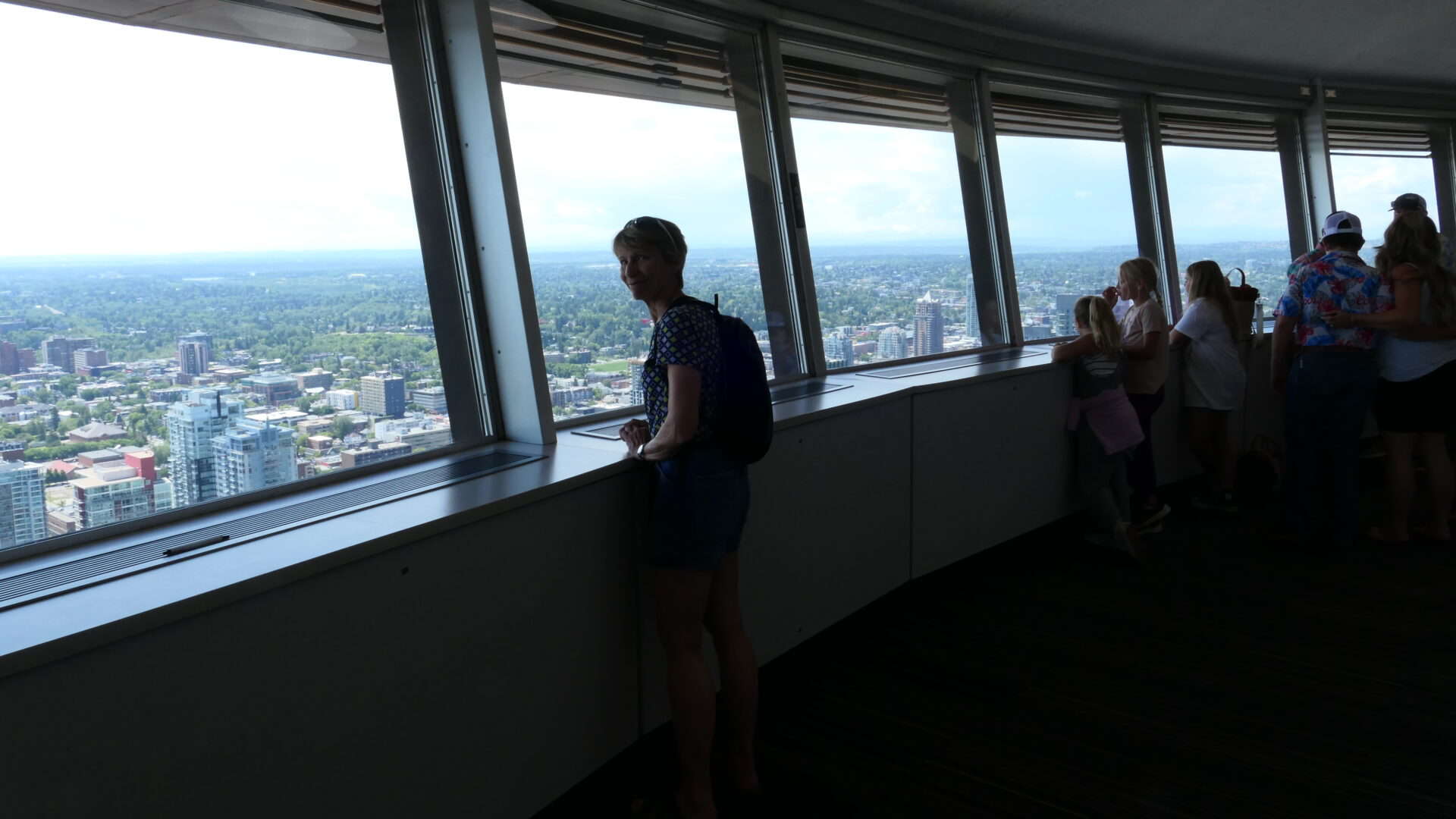 Nous avons marché dans Calgary à partir de la fameuse Tour du CN (c’est fou comme le train est omniprésent dans l’ouest) où un plancher de verre, tout en haut, permettait de voir de minuscules voitures, tout en bas… papillons dans le ventre garanti! De plus le dernier étage tout vitré permettait d’avoir une vue 360 degrés sur Calgary et ses différents points d’intérêts. Aussi, des panneaux nous donnaient différentes informations comme : la flamme olympique a brûlé au sommet de la tour lors des jeux d’hiver en 1988. Il était possible de la voir à plus de 15 kilomètres de distance.