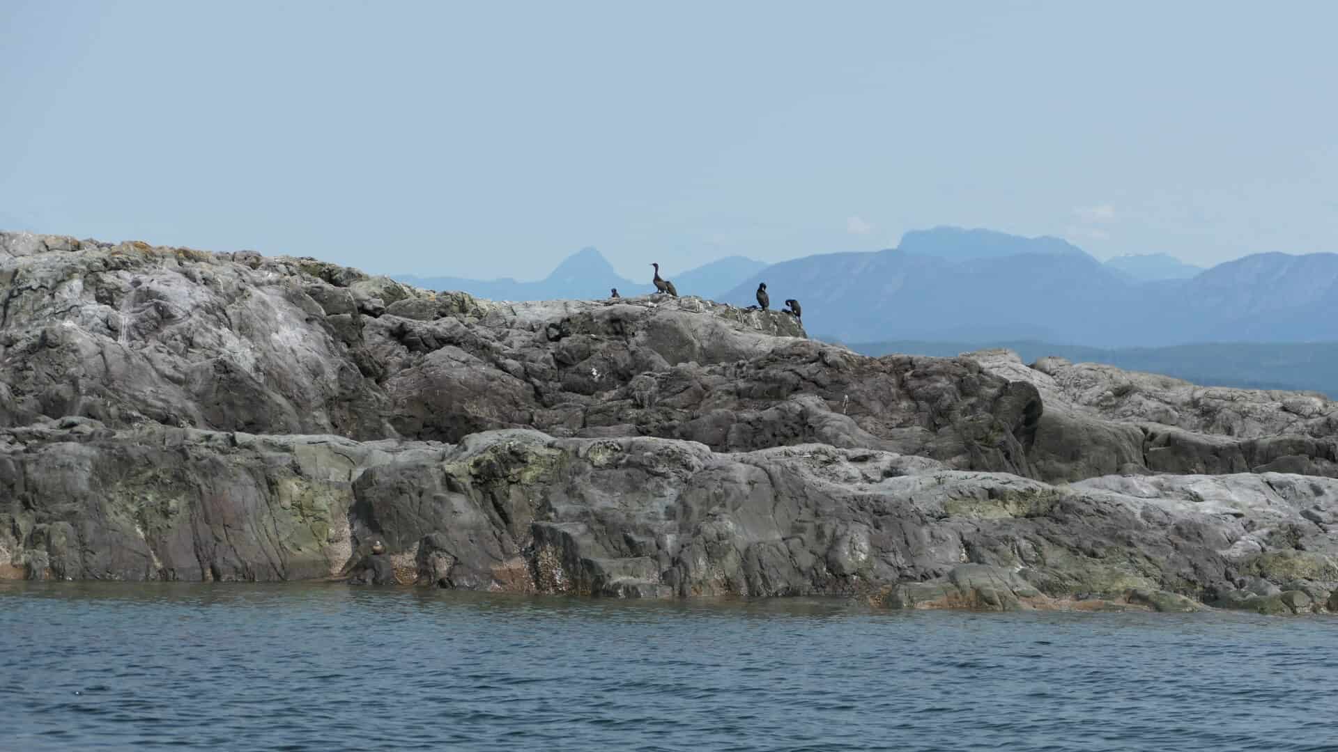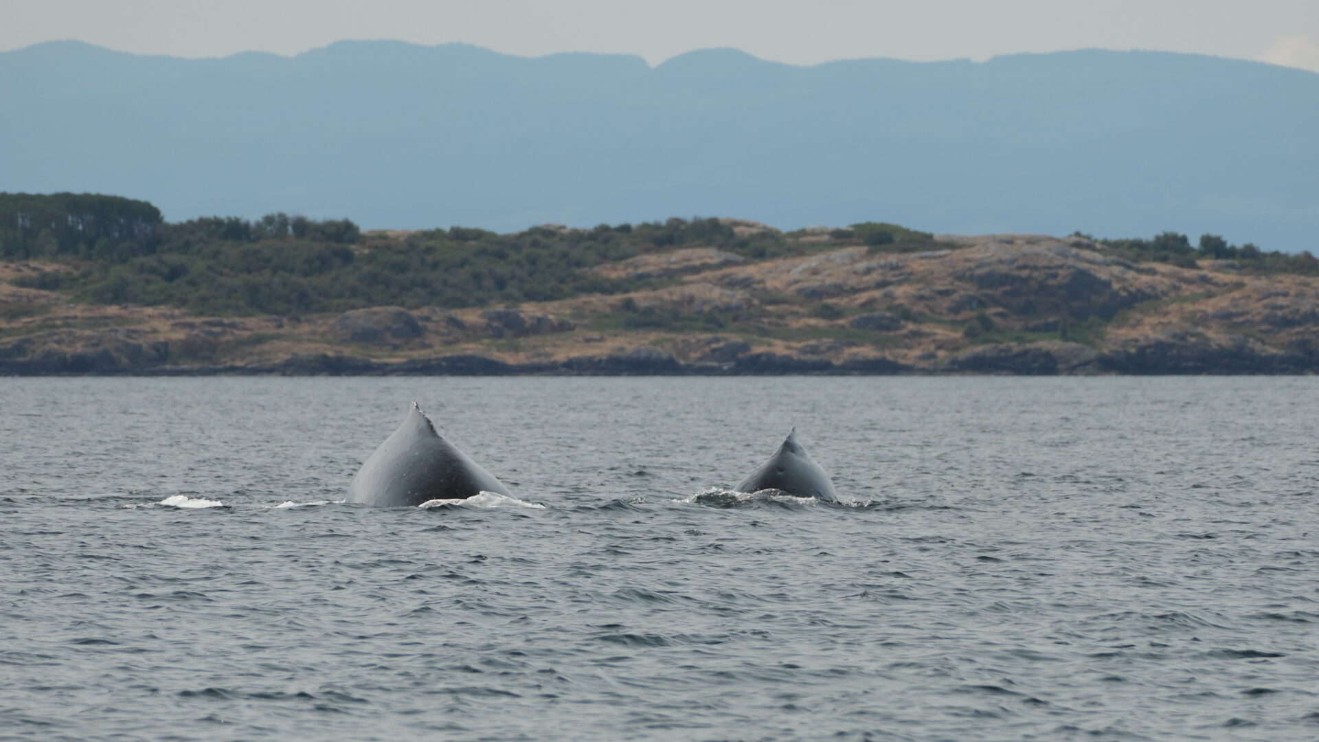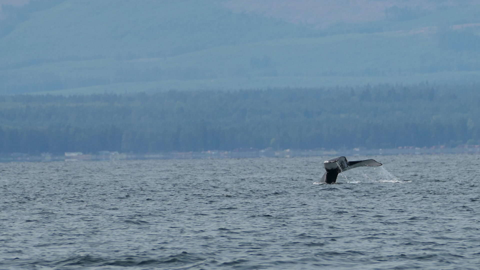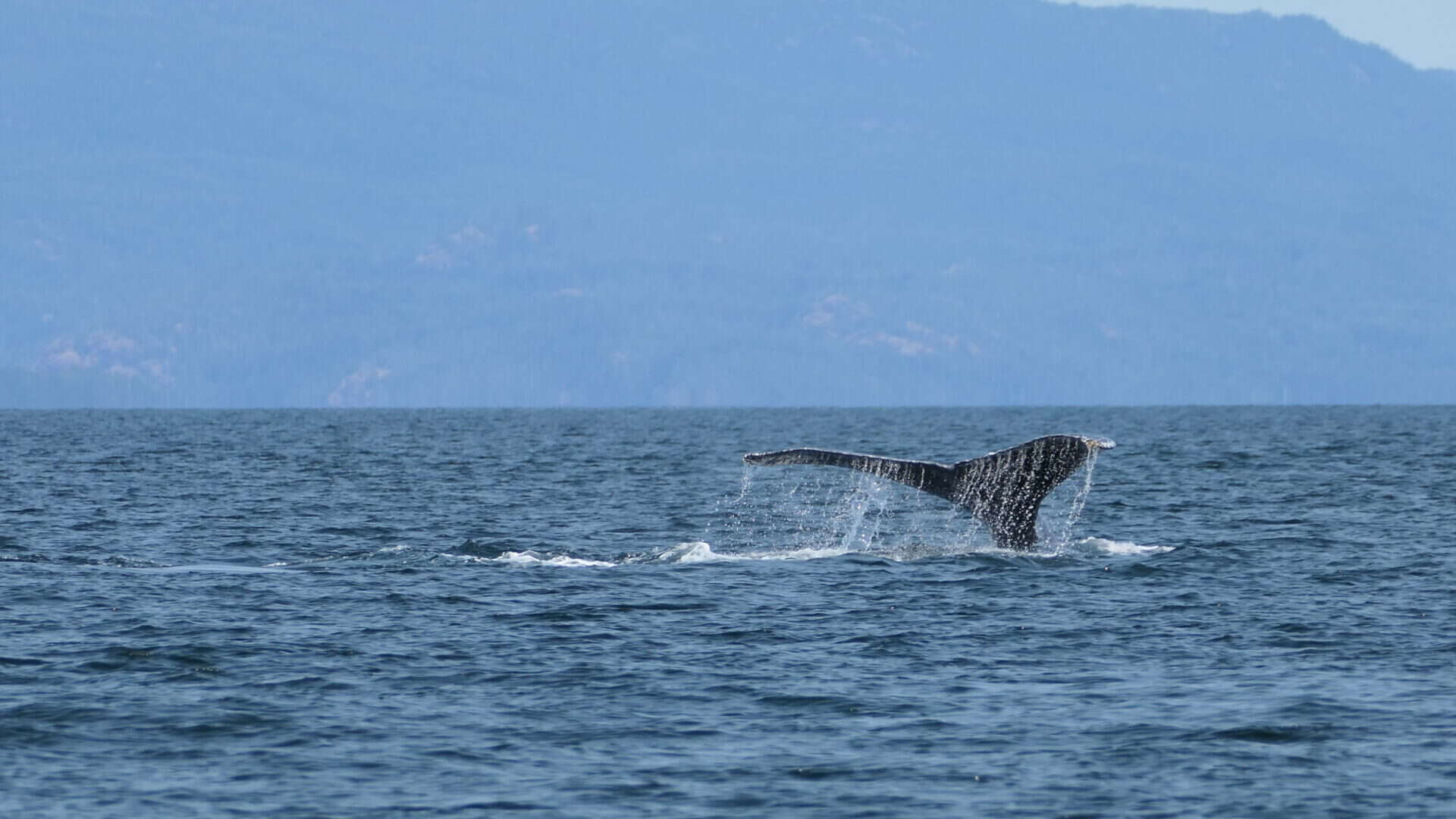 David, le capitaine (propriétaire-résident à la marina sur un autre beau bateau et aussi photographe amateur et water-taxi), nous fera naviguer les eaux du Discovery Passage tout en nous donnant une grande quantité d’informations avec beaucoup d’enthousiasme. Nous avons pu observer des baleines à bosse (maman et petit), des ocres, des lions de mer, des phoques et différents oiseaux marins. Notre groupe de 10 scrutait l’horizon et dès qu’on apercevait un jet d’eau s’élever dans les airs, on avait presque la promesse qu’un dos suivrait à la surface et qu’une plongée avec queue en finale se produirait. On a même observé la leçon d’une mère baleine à son petit qui imitait les mouvements maternels et les temps de plongées. Comme la nature est bien faite!