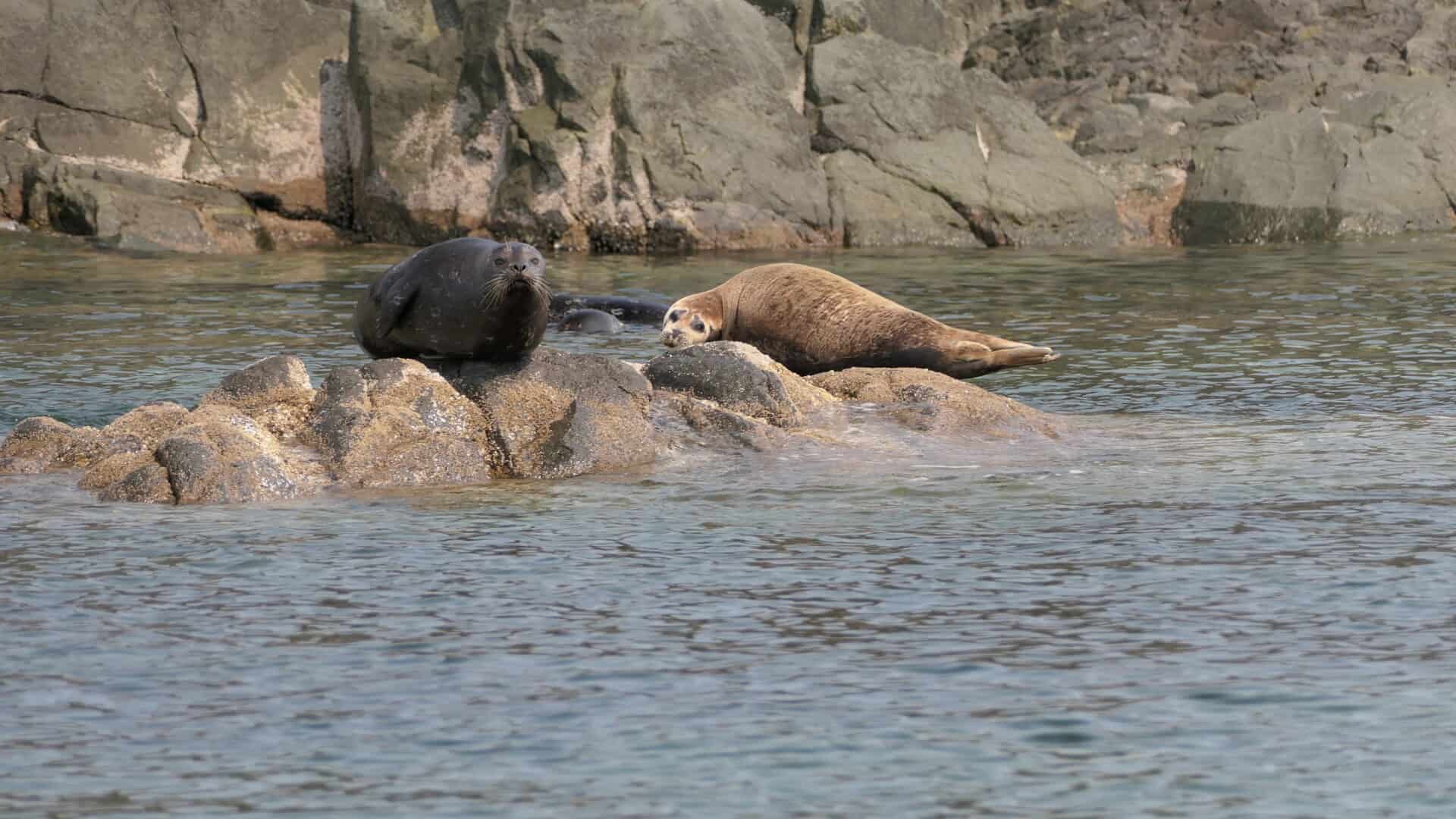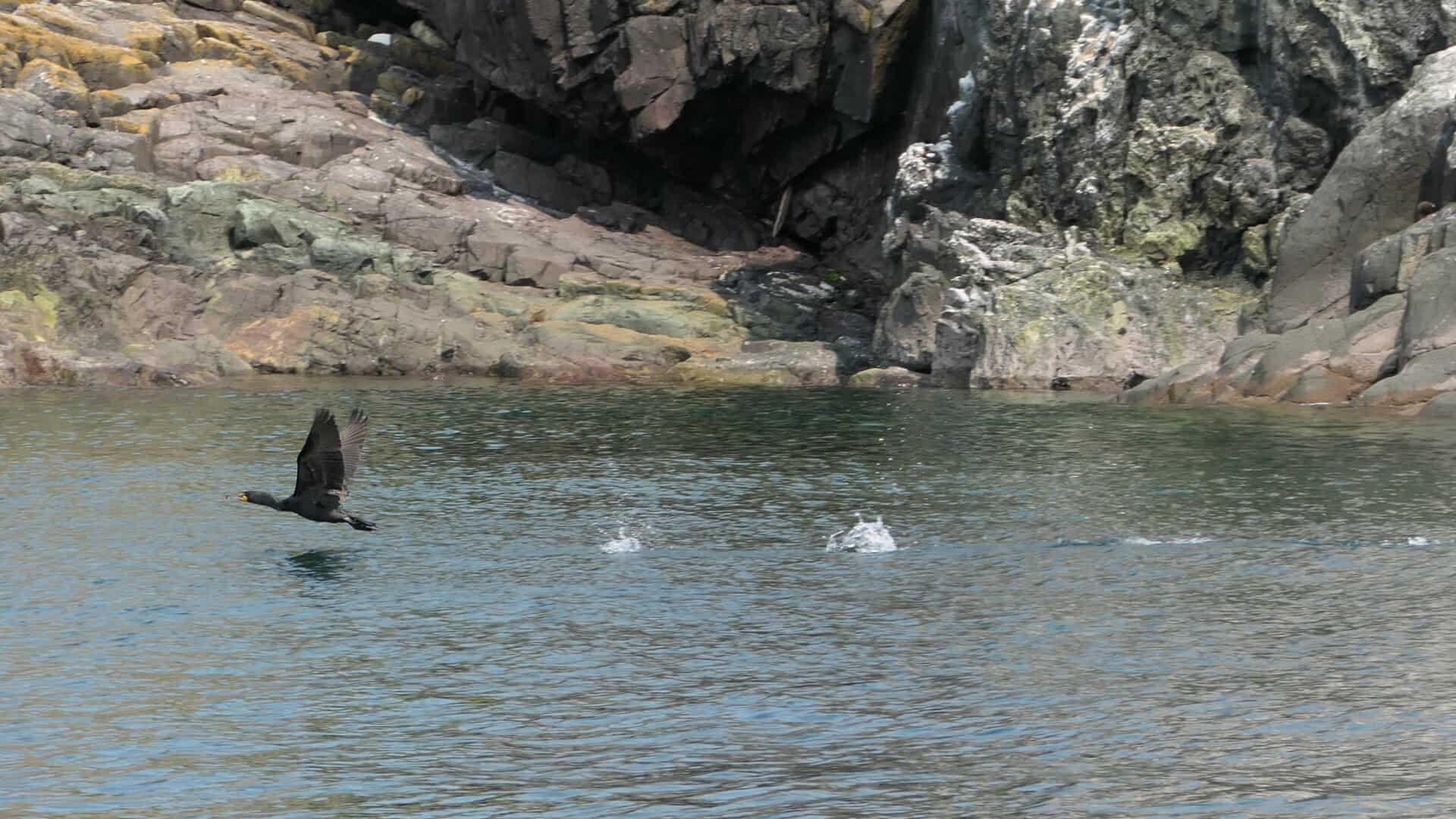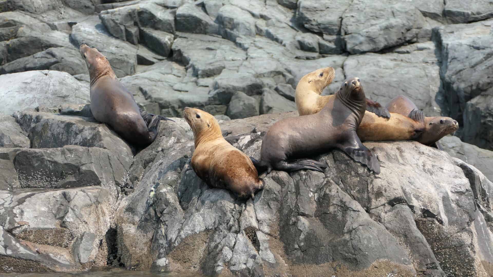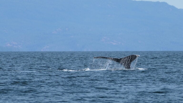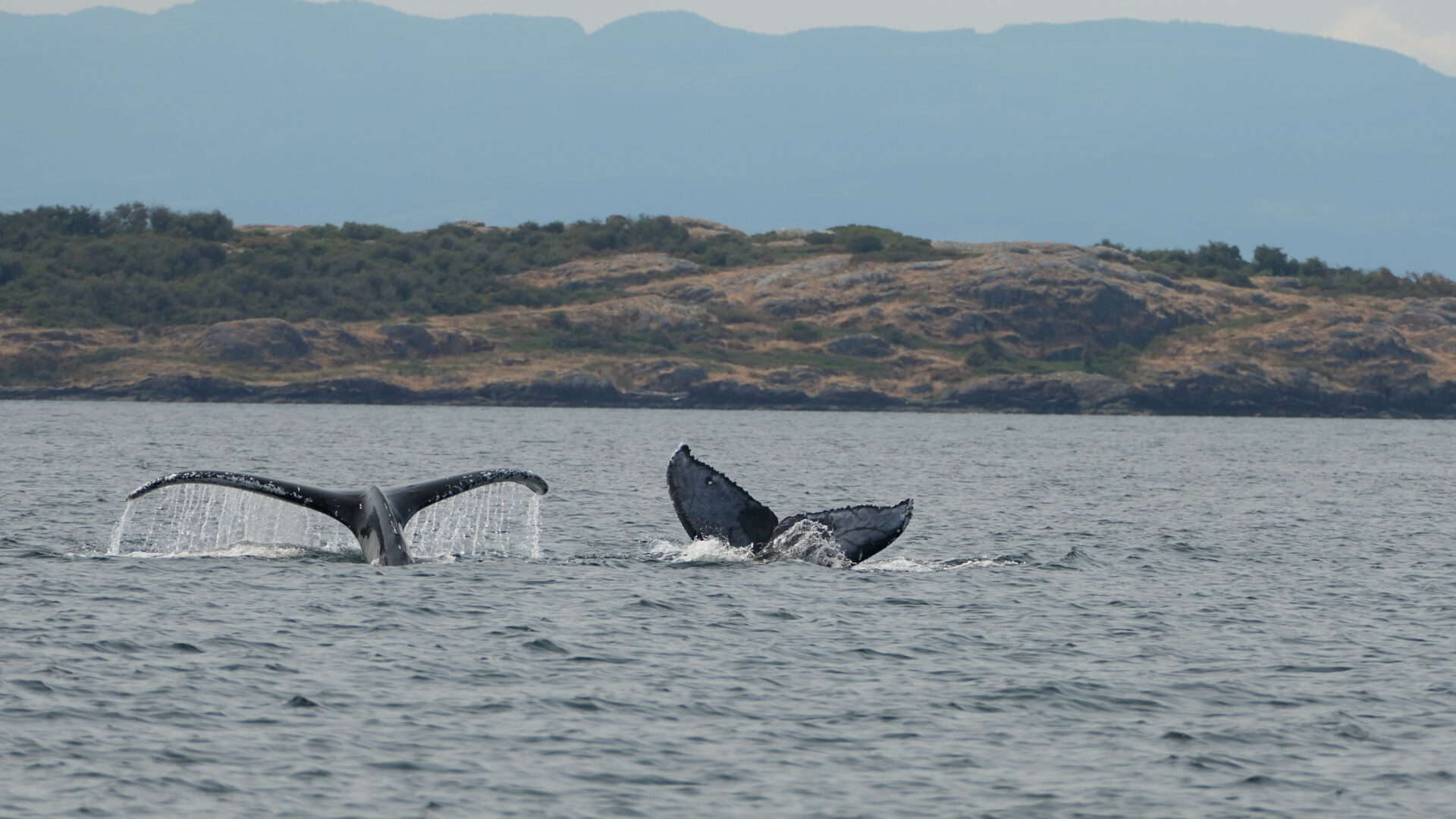 David, le capitaine (propriétaire-résident à la marina sur un autre beau bateau et aussi photographe amateur et water-taxi), nous fera naviguer les eaux du Discovery Passage tout en nous donnant une grande quantité d’informations avec beaucoup d’enthousiasme. Nous avons pu observer des baleines à bosse (maman et petit), des ocres, des lions de mer, des phoques et différents oiseaux marins. Notre groupe de 10 scrutait l’horizon et dès qu’on apercevait un jet d’eau s’élever dans les airs, on avait presque la promesse qu’un dos suivrait à la surface et qu’une plongée avec queue en finale se produirait. On a même observé la leçon d’une mère baleine à son petit qui imitait les mouvements maternels et les temps de plongées. Comme la nature est bien faite!