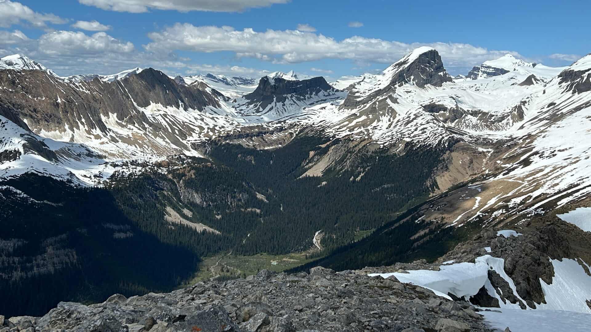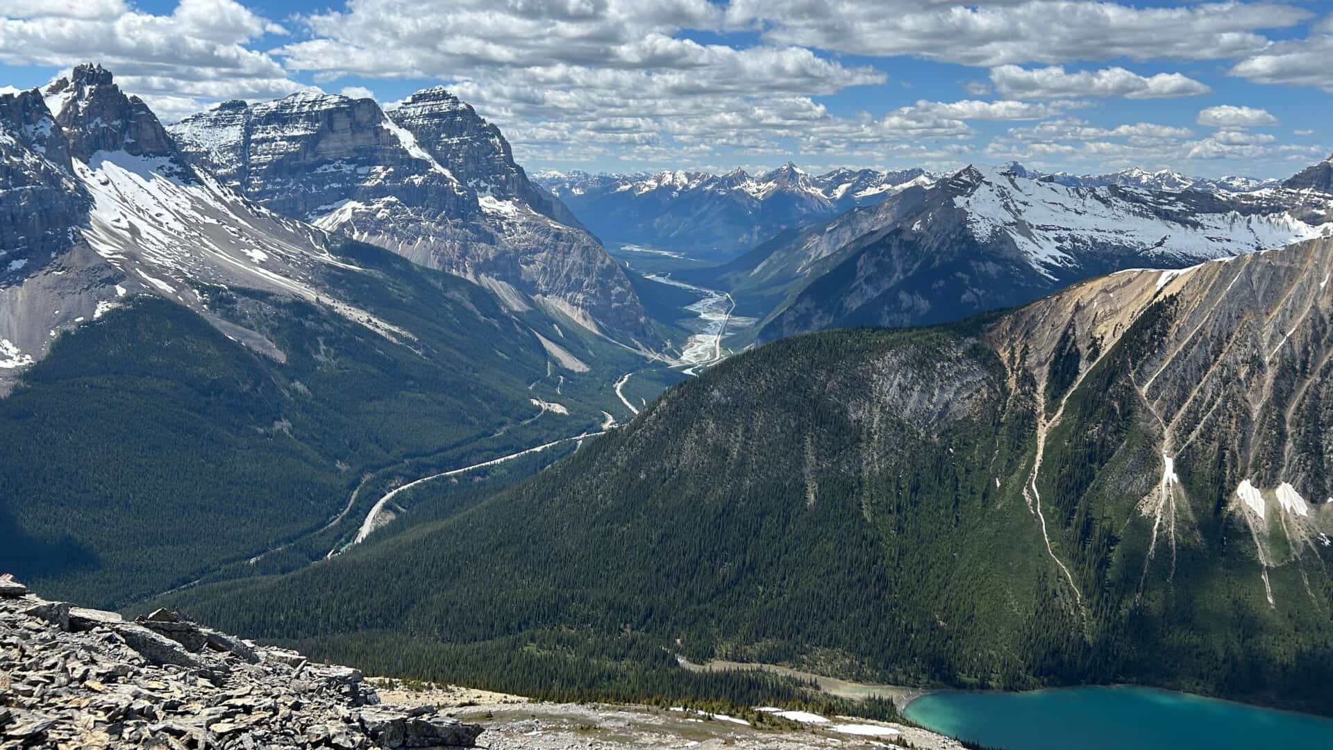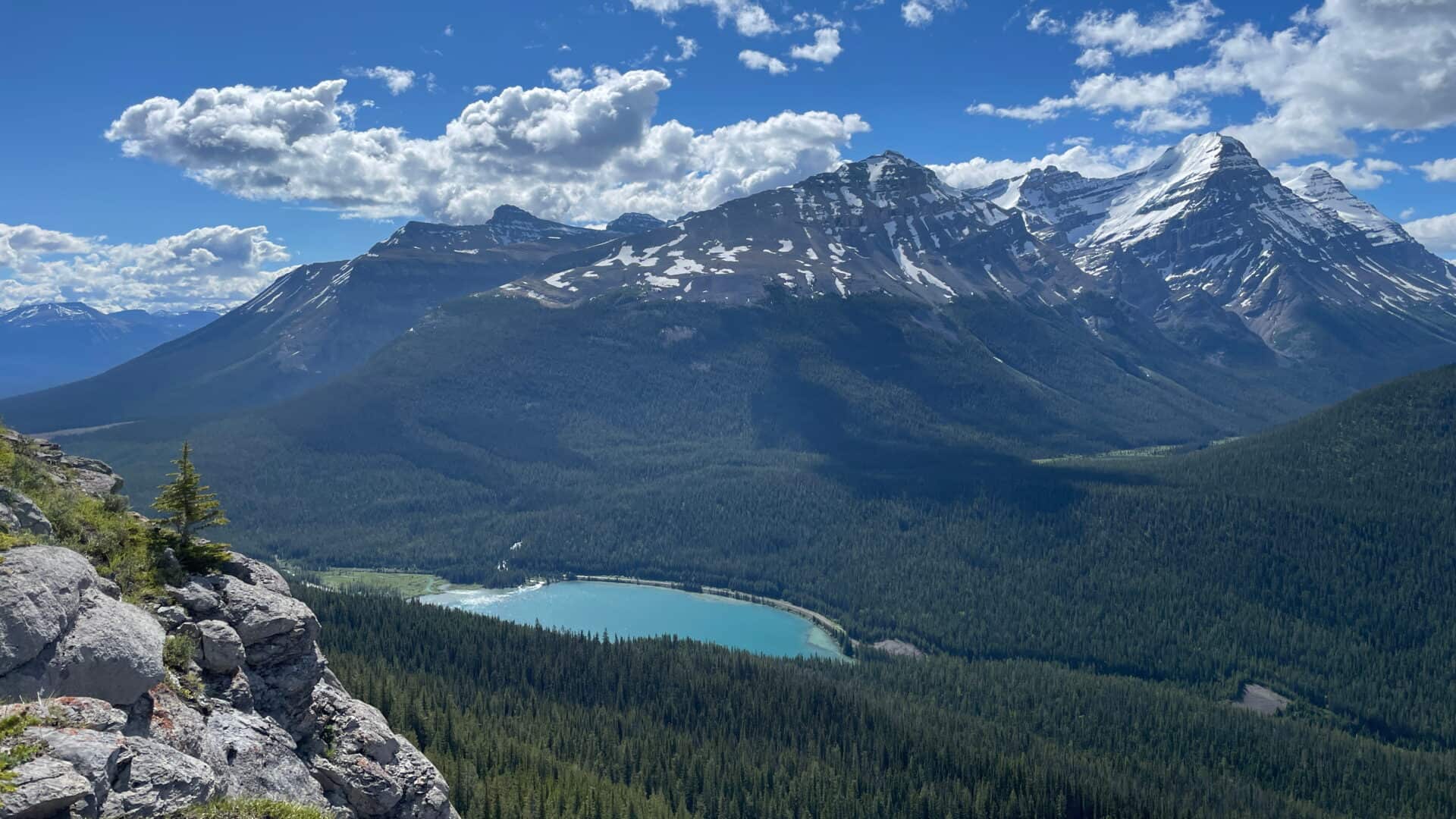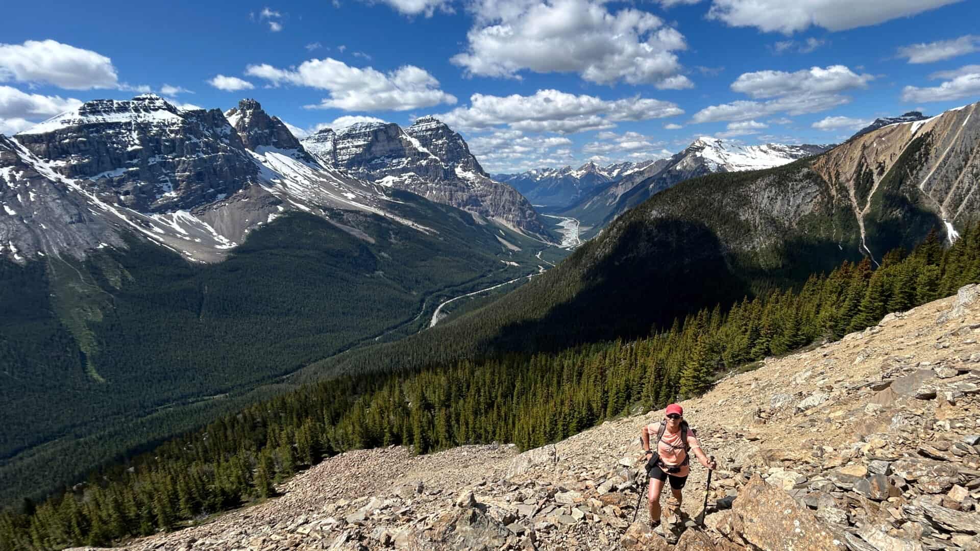 Au départ de cette randonnée dans le parc national Yoho, nous devions monter jusqu’à un premier belvédère qui se trouve à peu près à la moitié du parcours jusqu’au sommet. Puis nous devions redescendre afin de nous rendre à un lac nommé le lac Sherbrooke. Une belle et assez longue randonnée qui nous promettait une variété dans les paysages.