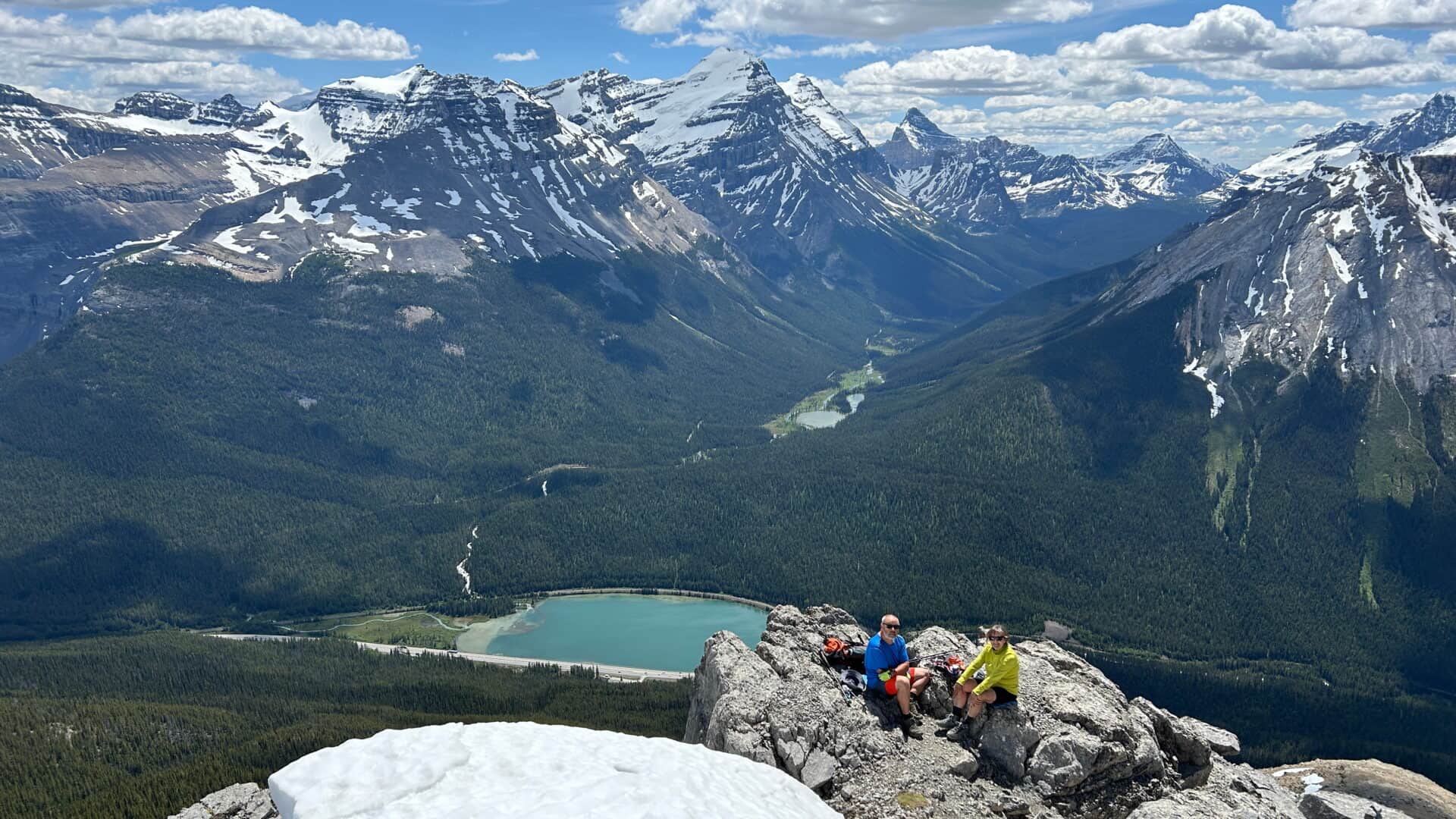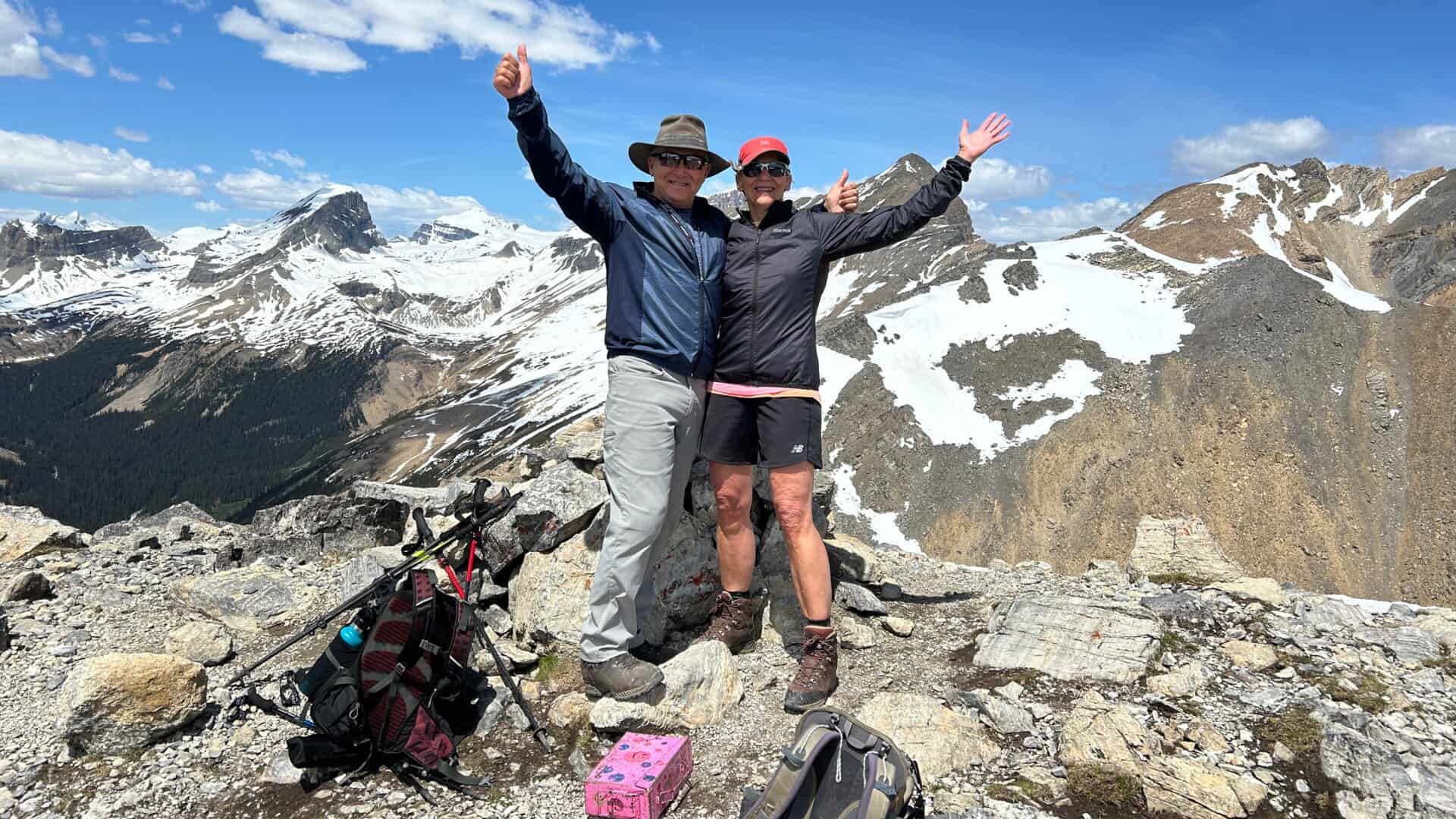 Nous entamons donc cette randonnée vers le belvédère que nous atteindrons assez rapidement et sans trop de difficultés. Nous y prenons une pause et discutons avec les gens présents. D’abord avec un couple de Seattle qui nous interroge sur notre parcours et notre histoire et qui en sont un peu impressionné. Puis sans le savoir, nous étions assis tout près d’un couple de Québécois, Basile et Josée, en provenance de Sherbrooke et qui ont le même itinéraire planifié de terminer la randonnée au lac Sherbrooke.